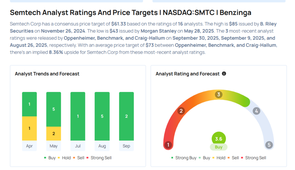 Oppenheimer analyst Rick Schafer upgraded the rating for Semtech Corporation (NASDAQ:SMTC) from Perform to Outperform and announced a price target of $81. Semtech shares closed at $61.98 on Monday. See how other analysts view this stock.