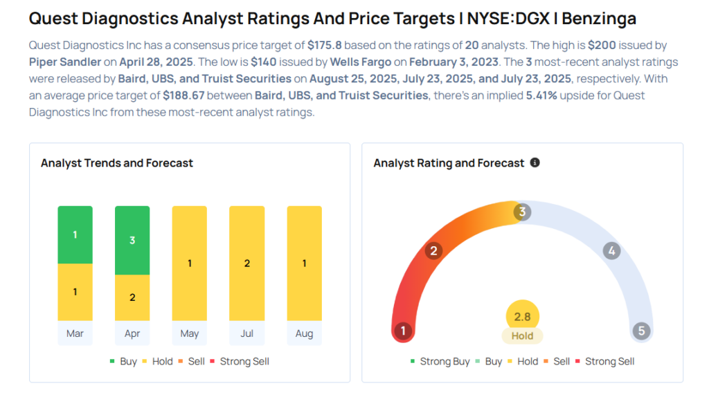 Baird analyst Eric Coldwell downgraded Quest Diagnostics Incorporated (NYSE:DGX) from Outperform to Neutral and maintained the price target of $194. Quest Diagnostics shares closed at $180.23 on Friday. See how other analysts view this stock.