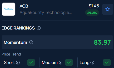 Benzinga’s Edge Stock Rankings highlight that AQB has a Momentum score of 83.97. Track the performance of other players in this segment.