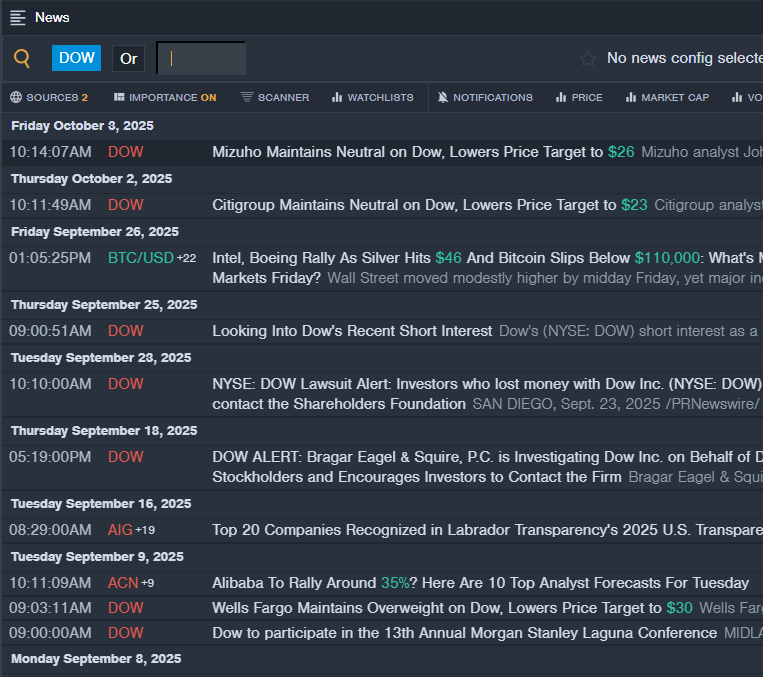 Benzinga Pro's real-time newsfeed alerted to latest DOW news