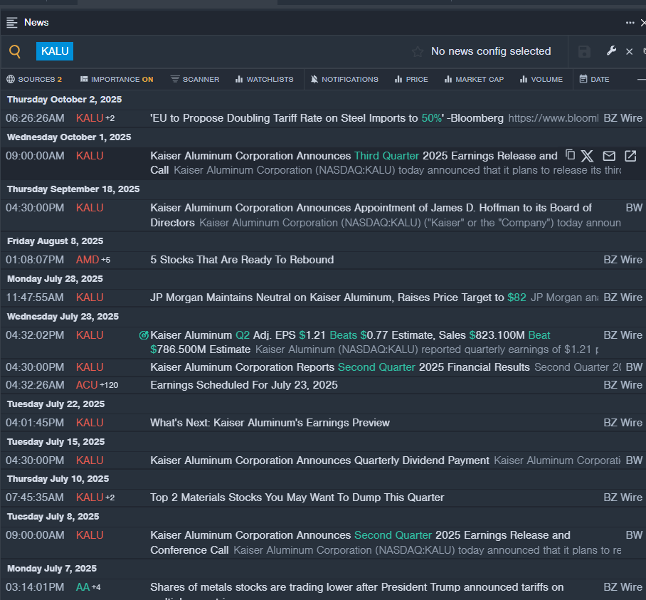 Recent News: Kaiser Aluminum will release its third quarter 2025 financial and operating results on Wednesday, Oct. 22, 2025, after the closing bell.
