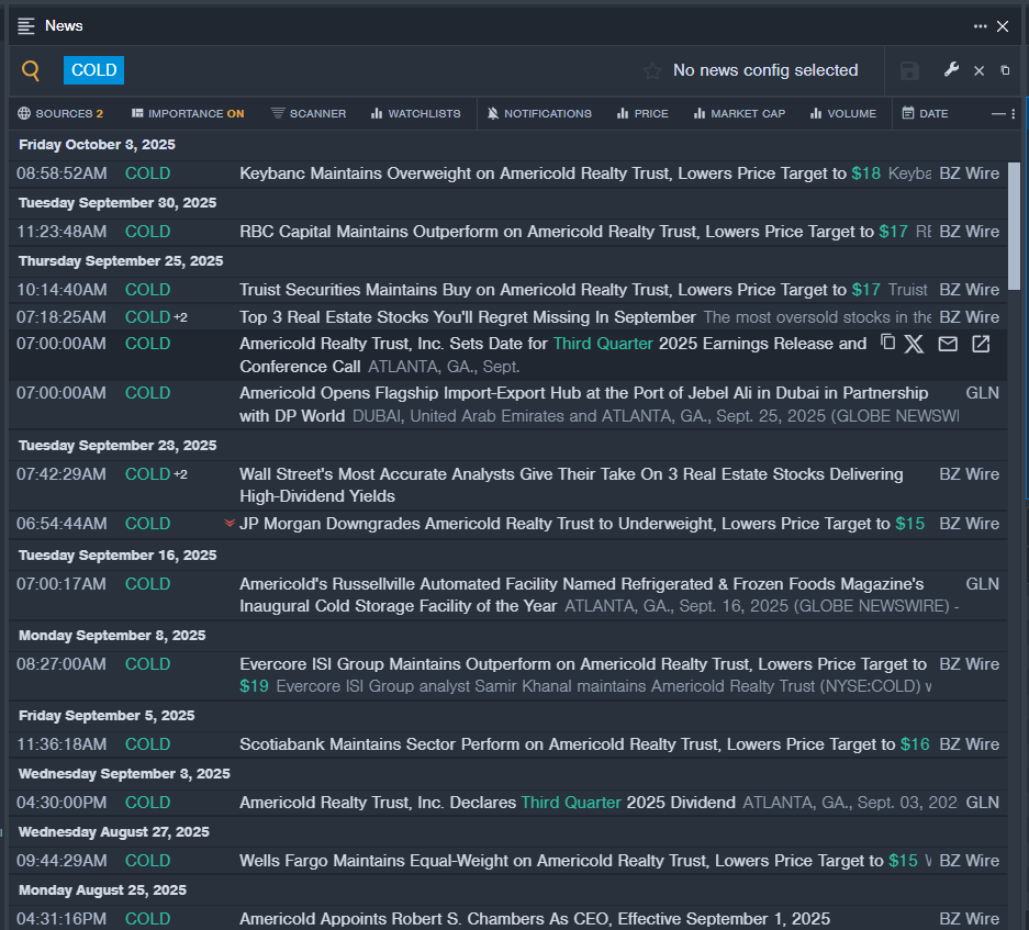 Benzinga Pro's real-time newsfeed alerted to latest COLD news