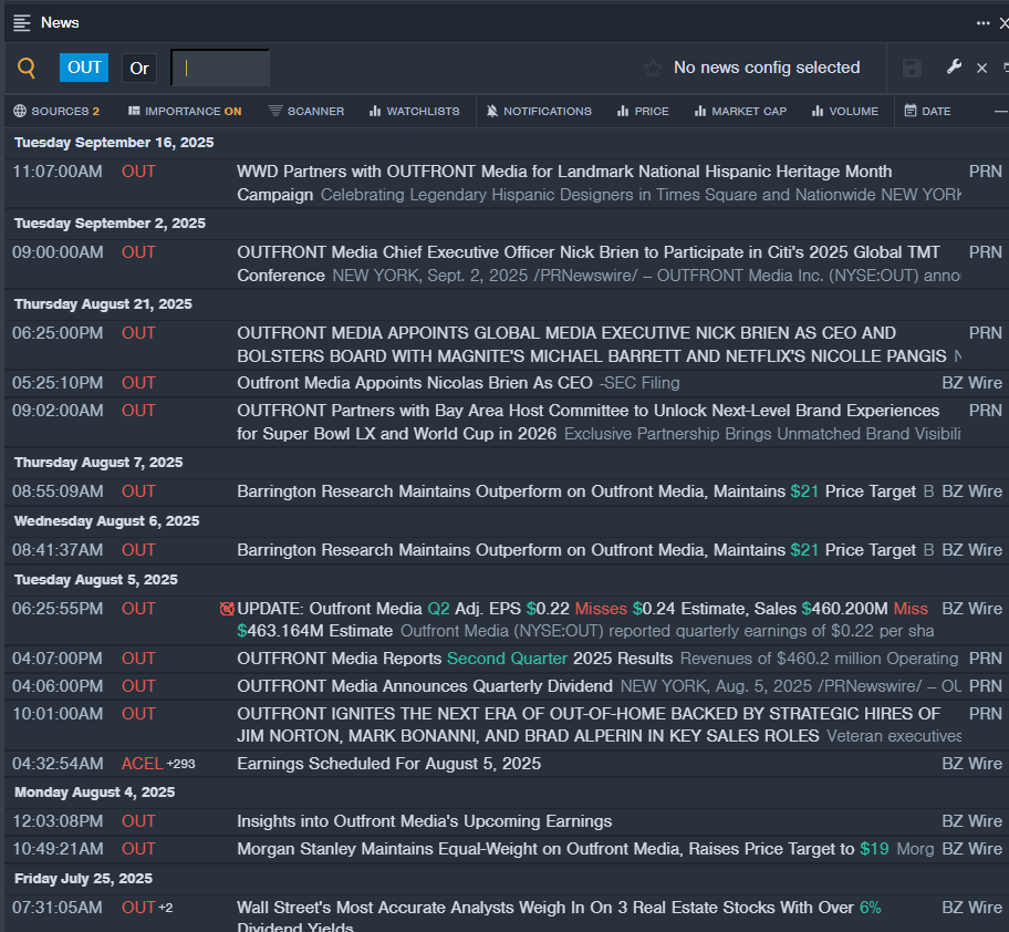 Recent News: On Aug. 5, Outfront Media posted downbeat quarterly results.