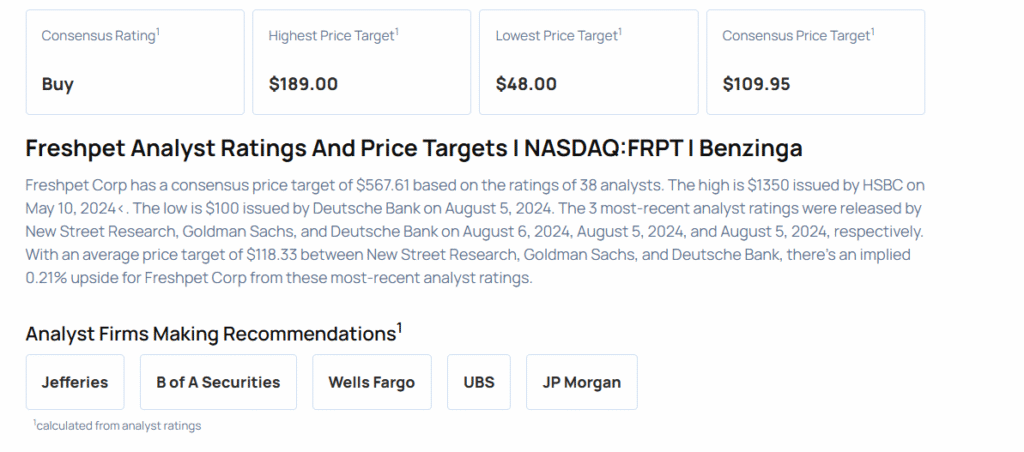 Jefferies analyst Kaumil Gajrawala downgraded Freshpet Inc (NASDAQ:FRPT) from Buy to Hold and cut the price target from $97 to $53. Freshpet shares closed at $49.51 on Wednesday. See how other analysts view this stock.