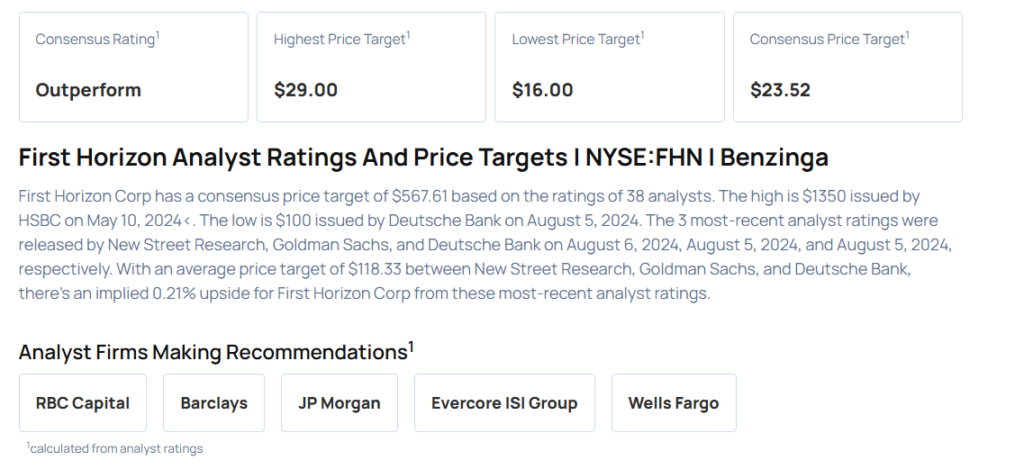 Analysts expect the Memphis, Tennessee-based company to report quarterly earnings at 45 cents per share, up from 42 cents per share in the year-ago period. First Horizon projects quarterly revenue of $847.99 million, compared to $832 million a year earlier, according to data from Benzinga Pro.