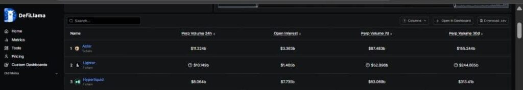 Having secured $10.6 billion in 24-hour perpetual DEX trading volume, Aster has surpassed competitors Lighter ($10.1B) and Hyperliquid (CRYPTO: HYPE) ($8B) to claim the top spot.