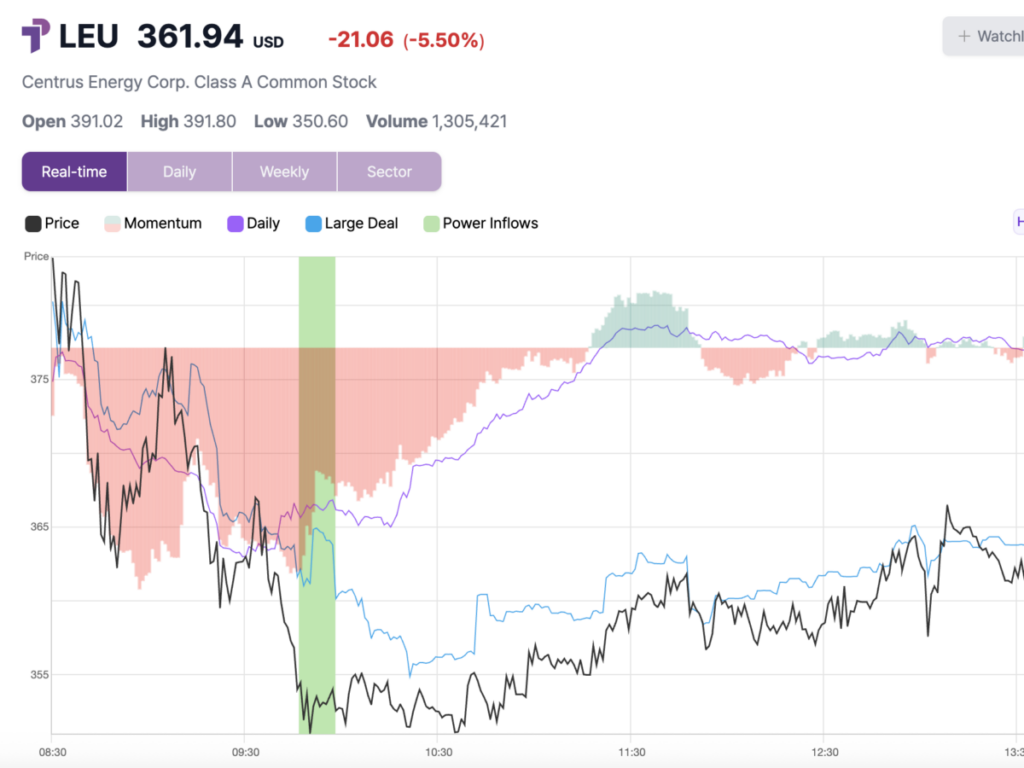 Centrus Energy Corp (NYSE:LEU) experienced a significant Power Inflow alert, a key bullish indicator that is closely tracked by traders who value order flow analytics, specifically institutional and retail order flow data.