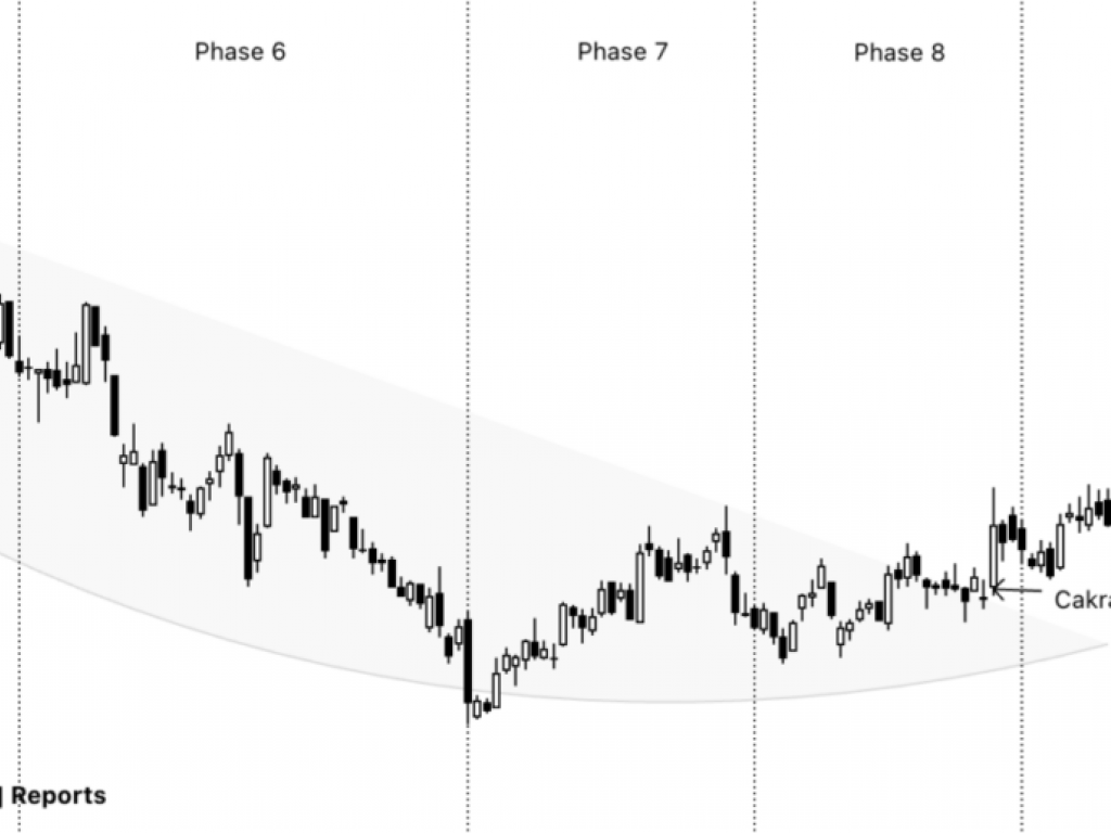 According to the Adhishthana Principles, stocks often form a structure called the Adhishthana Cakra between Phases 4 and 8. This formation typically resembles a channel or arc pattern. A breakout from this structure in Phase 9 is considered a highly bullish signal, marking the start of the Adhishthana Himalayan Formation. This pattern consists of a sharp ascent, a peak, and a final descent.