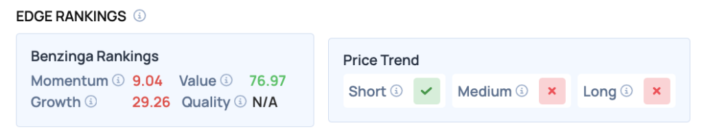 Benzinga Edge Rankings: According to Benzinga Edge stock rankings, SWBI exhibits a strong Value score of 76.97, suggesting the stock may be attractively priced for investors.