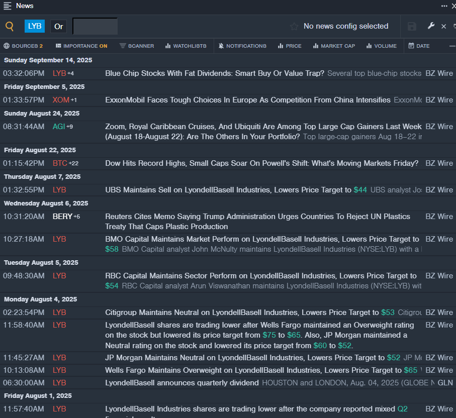 Benzinga Pro’s real-time newsfeed alerted to latest LYB news.