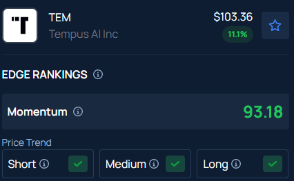 With a strong Momentum in the 93rd percentile, Benzinga’s Edge Stock Rankings indicate that TEM has a positive price trend across all time frames. Know how its momentum lines up with other well-known names.