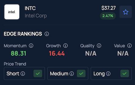 Intel ranks among the top stocks in Benzinga's Edge Stock Rankings for Momentum, reflecting strong price performance across short, medium and long-term periods. A full analysis, including comparisons with peers and competitors, is available here.