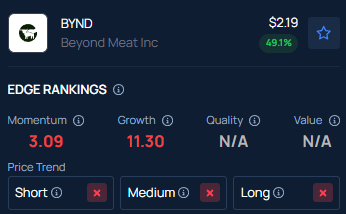 Benzinga Edge Stock Rankings indicate that BYND has a negative price trend across all time frames. Track the performance of other players in this segment.
