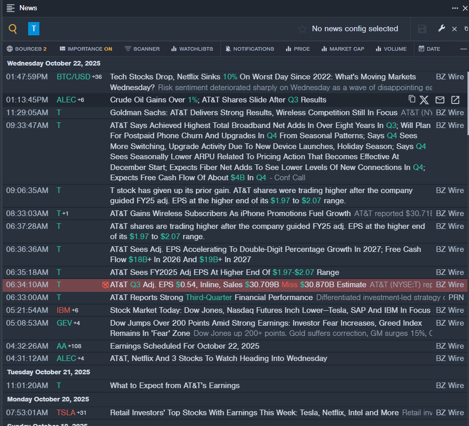 Benzinga Pro’s real-time newsfeed alerted to latest T news.