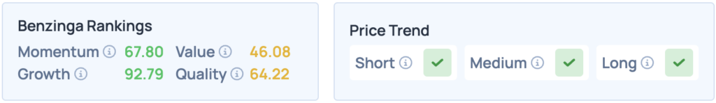 Amazon shares were up 1% on Tuesday, closing at $229.25, and are up 0.31% overnight. The stock scores high on Momentum and Growth in Benzinga’s Edge Stock Rankings, with a favorable price trend in the short, medium and long terms. Click here for deeper insights on the stock, its peers and competitors.